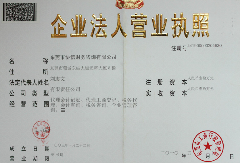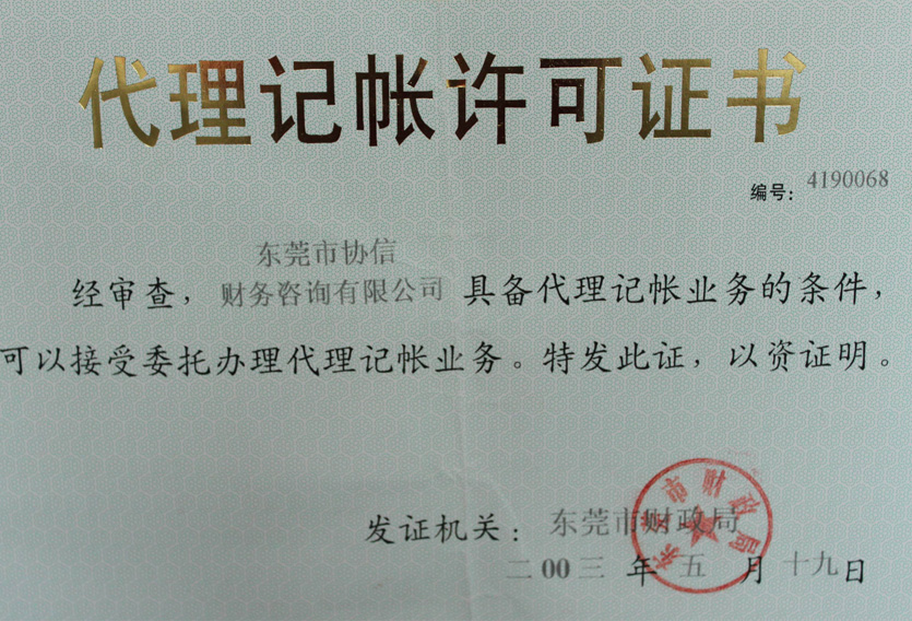 东莞市协信财务咨询有限公司是2003年1月22日由财政局批准(批准许可证号:4190068),市工商局注册登记的工商财税综合服务企业,提供东莞商事登记、东莞工商注册策划、东莞公司税务筹划、东莞代办营业执照、东莞申请一般纳税人、东莞代办进出口权、东莞代理记帐、东莞财务代理、东莞会计代理、东莞税务代理、东莞代办验资、东莞代办审计报告、东莞代办出具查账报告、代办企业所得税汇算清缴等一站式综合性的东莞户籍专业人才服务。
